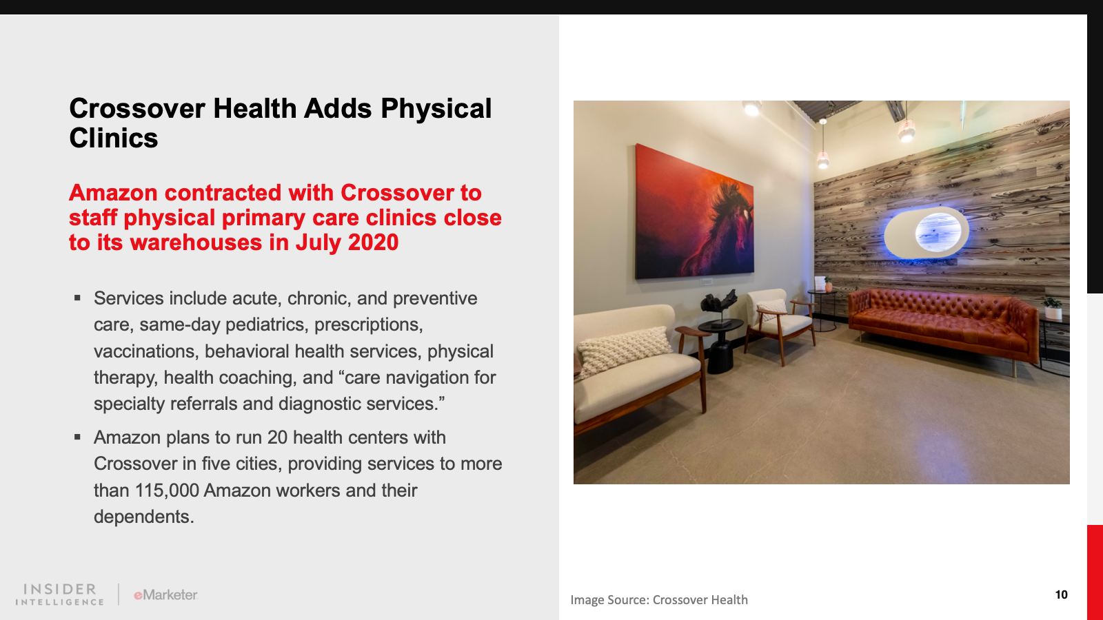 Amazon is maneuvering to become a dominant player in direct-to-consumer (D2C) healthcare services, beginning with its online pharmacy and telehealth services for its employees. It may acquire more healthcare delivery outlets, such as primary care and urgent care clinics. Entrenched industry players are watching carefully.