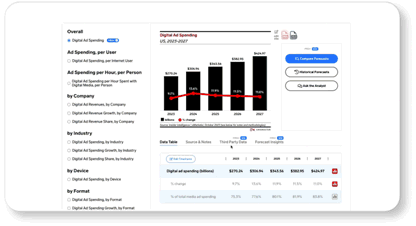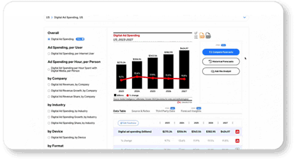 PRO+ delivers data-centric forecasts and insights to clients, faster, with in-depth reports and analysis covering digital marketing trends, interactive forecasts on market trends and consumer behavior, and flexible data visualizations. All designed to equip your revenue-driving teams with actionable takeaways for better business decisions.