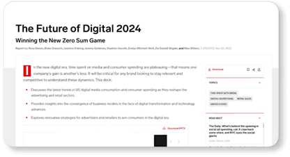 A faster, smarter way to navigate EMARKETER research. AI Search delivers context-driven answers tailored to your specific questions.